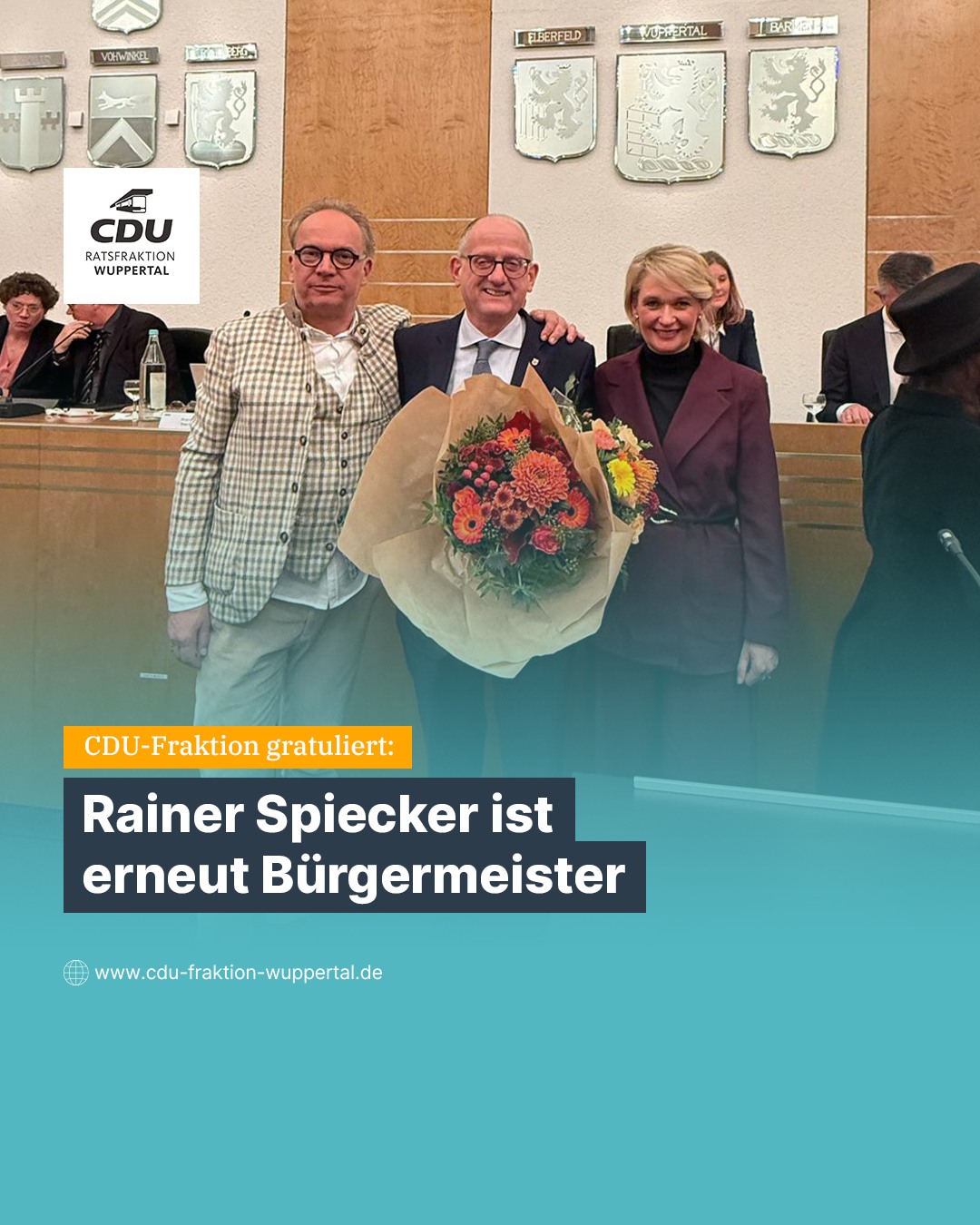 Wir gratulieren @rainerspiecker herzlich zur erneuten Ernennung zum Bürgermeister und wünschen ihm für seine kommende Amtszeit viel Erfolg. #cdu #cdufraktion #cdufraktionwuppertal #wuppertal #politik #partei #ratsfraktion #bürgermeister