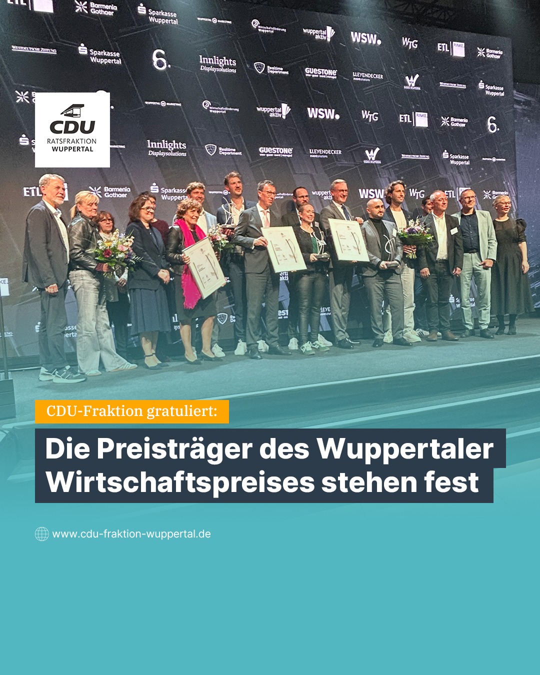 Der Wuppertaler Wirtschaftspreis ehrt Unternehmen, die mit Innovation, Mut und Engagement die Stadt voranbringen ? Glückwunsch an alle Gewinner! #cdu #cdufraktion #cdufraktionwuppertal #wuppertal #politik #partei #ratsfraktion #wirtschaftspreis #preisträger