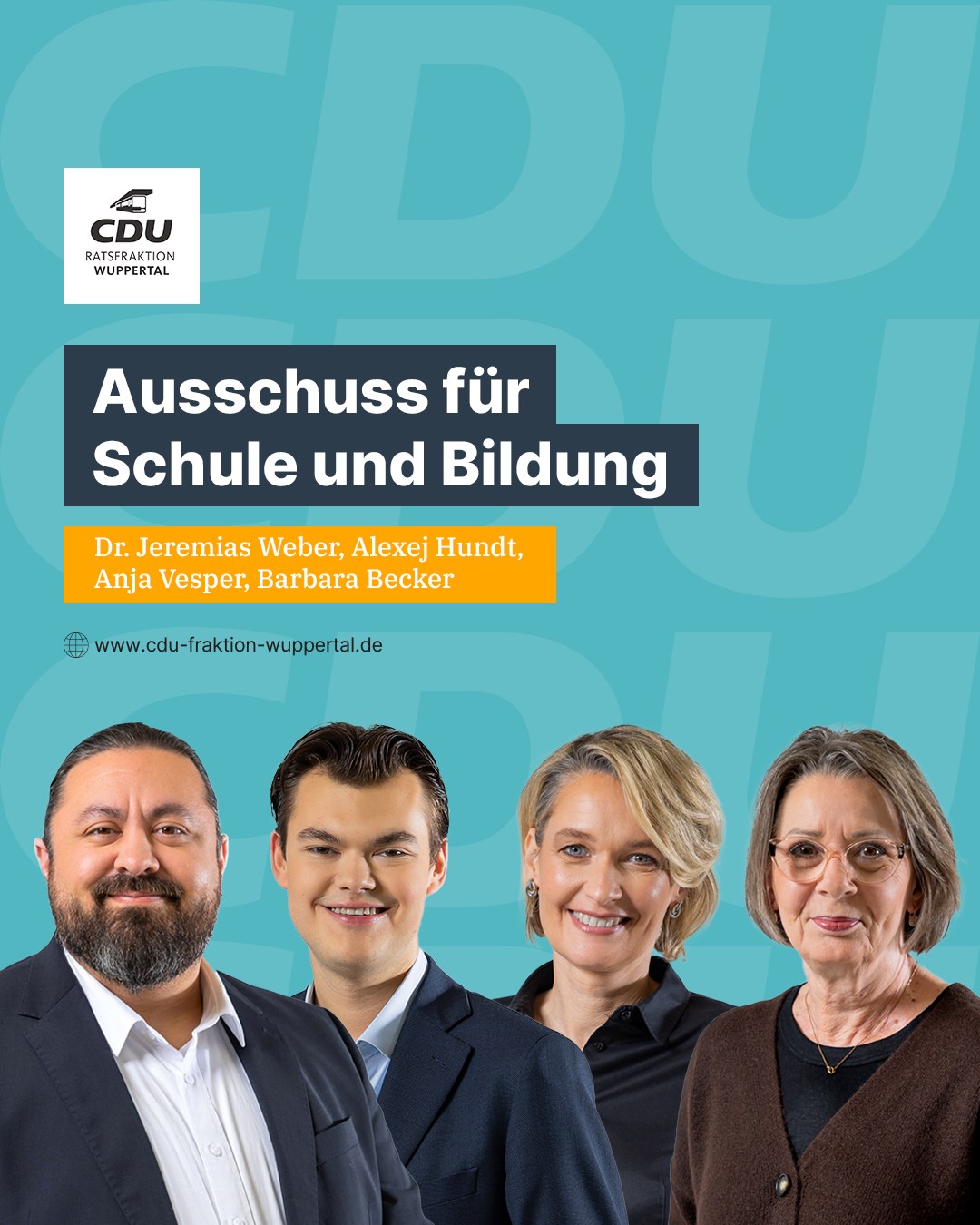 Unsere Mitglieder im Ausschuss für Schule und Bildung: Dr. Jeremias Weber, Alexej Hundt, Anja Vesper & Barbara Becker #cdu #cdufraktion #cdufraktionwuppertal #wuppertal #politik #partei #ratsfraktion #ausschuss