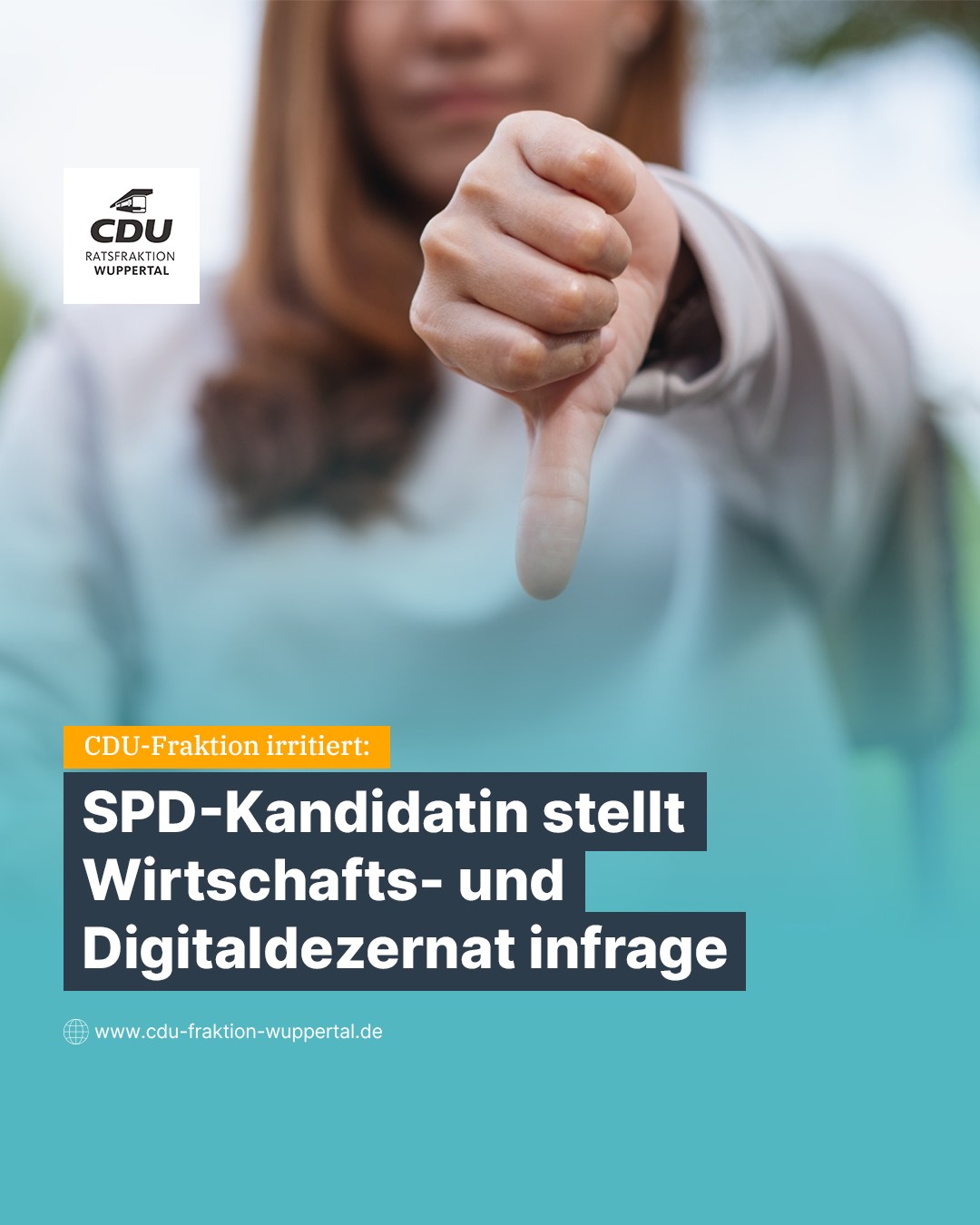 mehrDie CDU-Fraktion zeigt sich überrascht über die Aussagen der SPD-Kandidatin Miriam Scherff bei einer IHK-Veranstaltung in Wuppertal. Scherff hatte angekündigt, die Bereiche Wirtschaft und Digitalisierung künftig zur Chefsache zu erklären. Damit würde sie jedoch aus Sicht der CDU die erfolgreiche Arbeit von Dezernentin Dr. Sandra Zeh konterkarieren. Stattdessen rät die CDU dazu, das städtische Gebäudemanagement entschlossen zur Chefsache zu machen, um den dringend benötigten Schulbau voranzubringen. #cdu #cdufraktion #cdufraktionwuppertal #wuppertal #politik #partei #ratsfraktion #kommunalwahl