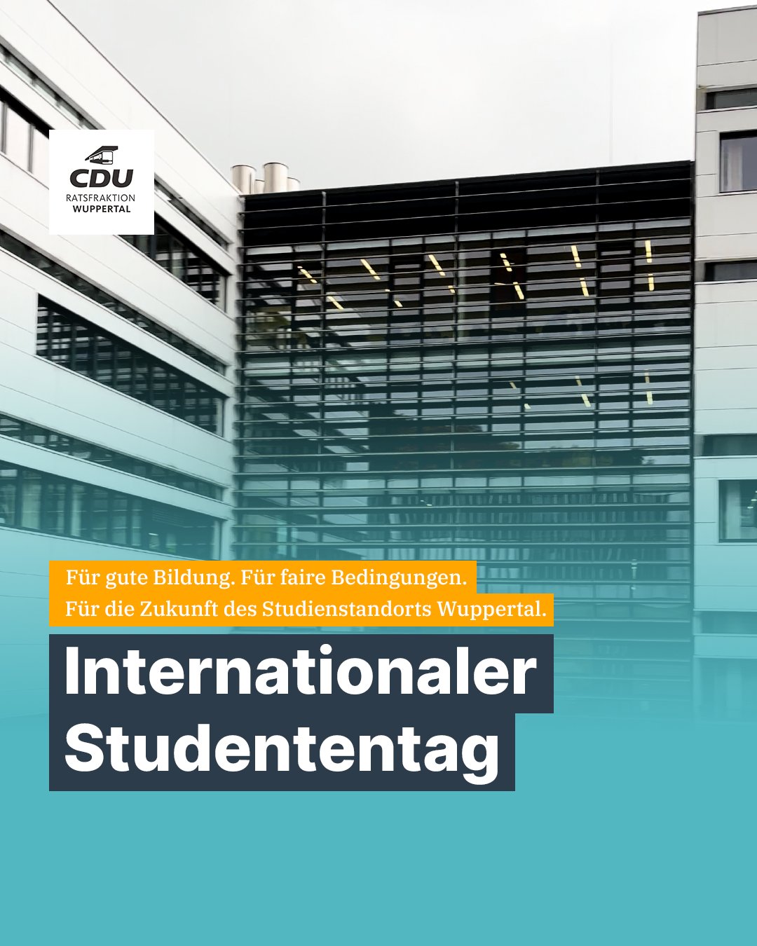 Zum Internationalen Studententag erinnern wir daran: Studierende sind die Zukunft unserer Gesellschaft. Ihre Ideen, ihre Kreativität und ihr Wissen formen unsere Städte, unsere Kultur und unser Zusammenleben. Umso unverständlicher sind die geplanten Kürzungen an der Uni Wuppertal ? besonders das geplante Auslaufen des Fachbereichs Architektur. Eine Stadt, die kreativ, innovativ und lebenswert sein will, darf ihre Bildungseinrichtungen nicht kaputtsparen. Heute stehen wir an der Seite aller Studierenden. Für gute Bildung. Für faire Bedingungen. Für die Zukunft des Studienstandorts Wuppertal. #cdu #cdufraktion #cdufraktionwuppertal #wuppertal #politik #partei #ratsfraktion #studenten