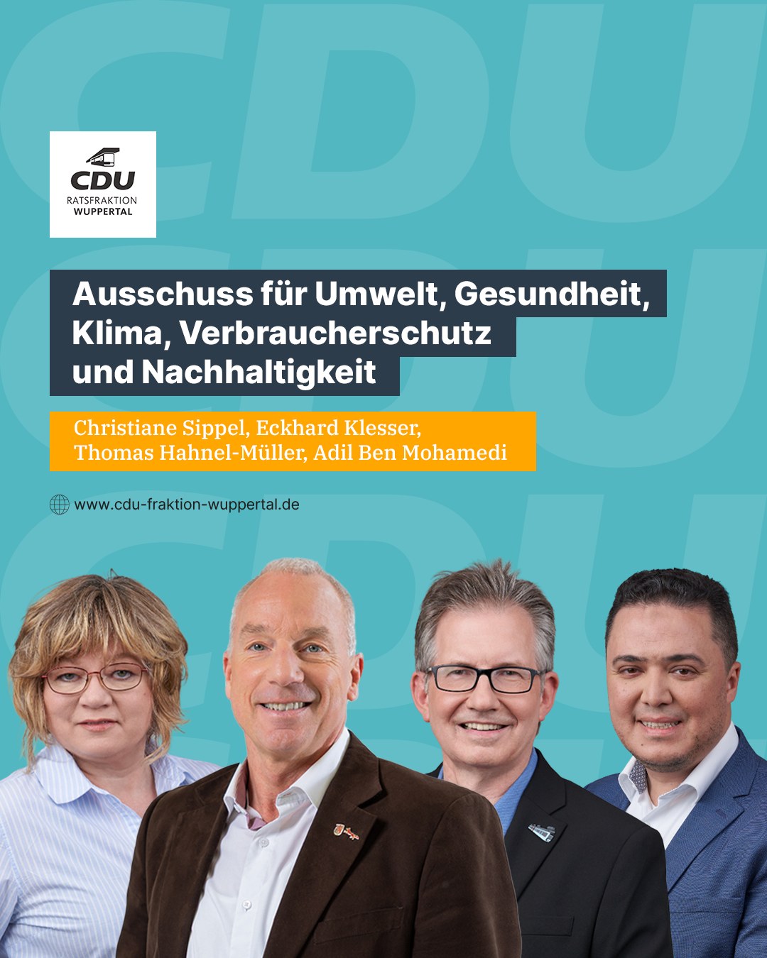 mehrUnsere Mitglieder im Ausschuss für Umwelt, Gesundheit, Klima, Verbraucherschutz und Nachhaltigkeit: Christiane Sippel, Eckhard Klesser, Thomas Hahnel-Müller & Adil Ben Mohamedi #cdu #cdufraktion #cdufraktionwuppertal #wuppertal #politik #partei #ratsfraktion #ausschuss