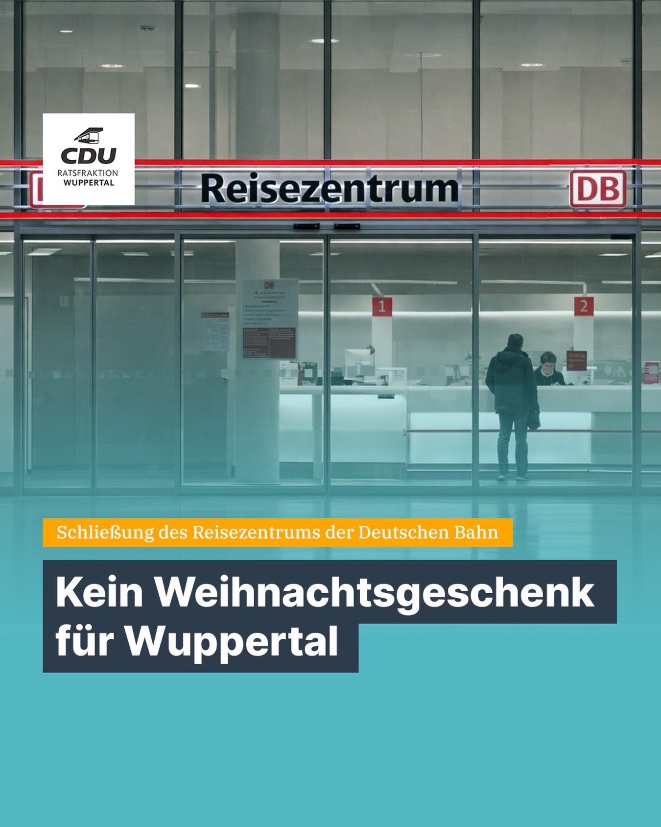 Die Deutsche Bahn hat das Reisezentrum im Wuppertaler Hauptbahnhof geschlossen ? ohne die zugesagte Übergangslösung umzusetzen. Gerade für ältere Menschen, Familien und alle, die persönliche Beratung brauchen, ist ein Service vor Ort unverzichtbar. Wuppertal darf nicht auf Düsseldorf verwiesen werden! 👉 Wir fordern die Deutsche Bahn auf, ihre Zusagen einzuhalten und kurzfristig eine kundenfreundliche Übergangslösung zu schaffen. #cdu #cdufraktion #cdufraktionwuppertal #wuppertal #politik #partei #ratsfraktion #deutschebahn